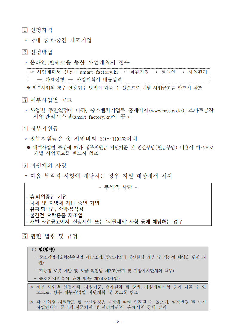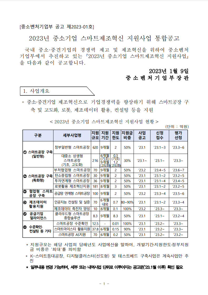 2023년 중소기업 스마트 제조혁신 지원사업 통합공고(2023. 1. 9)